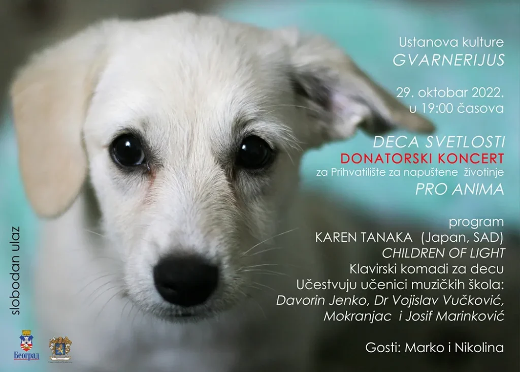 Donatorski koncert za azil za kuce i mace PRO ANIMA DECA SVETLOSTI / CHILDREN OF LIGHT Učestvuju: Učenici muzičkih škola “...