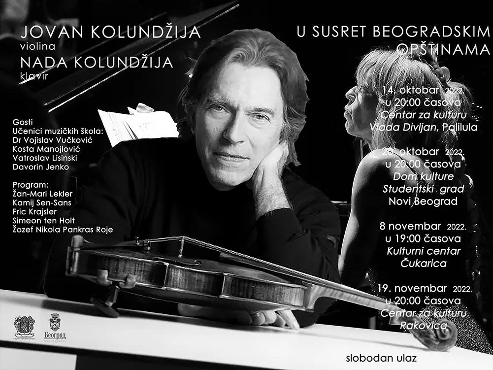 „U SUSRET BEOGRADSKIM OPŠTINAMA“ Serija beogradskih koncerata maestra Jovana Kolundžije JOVAN KOLUNDŽIJA, violina NADA KOL...