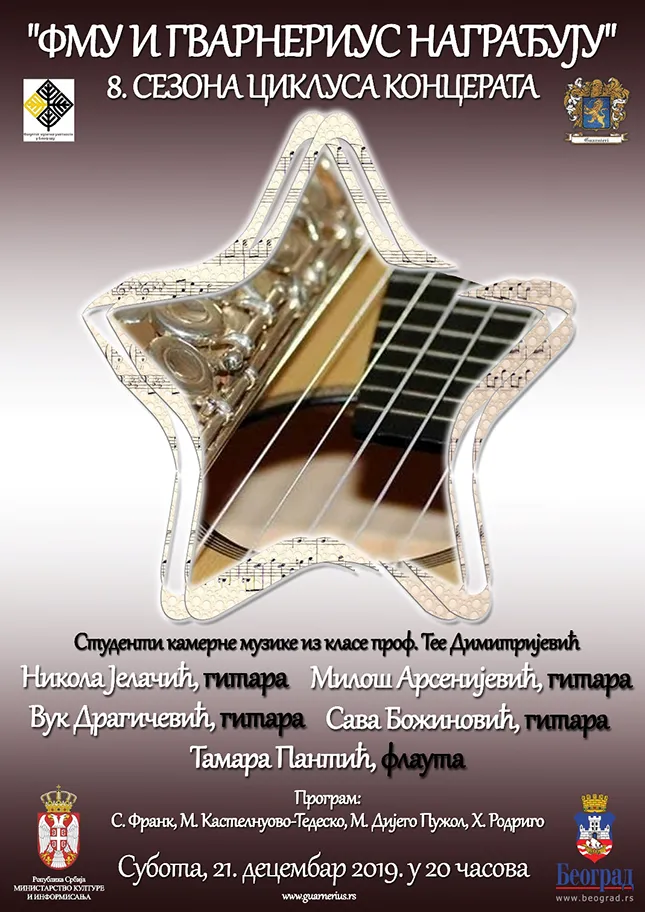 21 дец МУЗИКА Posted by admin октобар 3, 2025 0 „ФМУ И ГВАРНЕРИУС НАГРАЂУЈУ“ – Студенти камерне музике из класе проф. Тее Димитријевић 8. СЕЗОНА ЦИКЛУСА КОНЦЕРАТА „ФМУ И ГВАРНЕРИУС НАГРАЂУЈУ“ Студенти камерне музике из класе ван. проф. Тее Димитријевић НИКО... Continue reading