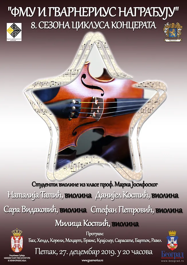 16 дец МУЗИКА Posted by admin октобар 3, 2025 0 „ФМУ И ГВАРНЕРИУС НАГРАЂУЈУ“ – концерт студената виолине из класе проф. Марка Јосифоског 8. СЕЗОНА ЦИКЛУСА КОНЦЕРАТА „ФМУ И ГВАРНЕРИУС НАГРАЂУЈУ“ Концерт студената виолине из класе проф. Марка Јосифоског НАТАЛИЈ... Continue reading