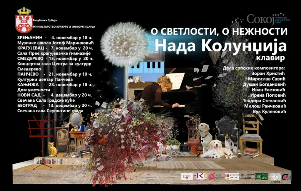15 нов МУЗИКА Posted by admin октобар 3, 2025 0 „О СВЕТЛОСТИ, О НЕЖНОСТИ“ концертна турнеја пијанисткиње Наде Колунџије! „О СВЕТЛОСТИ, О НЕЖНОСТИ“ концертна турнеја пијанисткиње Наде Колунџије! Понедељак, 4. новембар у 18ч, Зрењанин Четвртак, 7... Continue reading