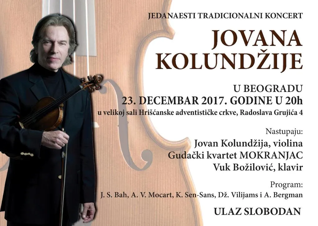 23 dec MUZIKA Posted by admin октобар 3, 2025 0 JEDANAESTI TRADICIONALNI KONCERT JOVANA KOLUNDŽIJE U BEOGRADU! JEDANAESTI TRADICIONALNI KONCERT JOVANA KOLUNDŽIJE U BEOGRADU! Subota 23. decembar 2017. godine u 20 časova Velika sala Hri... Continue reading