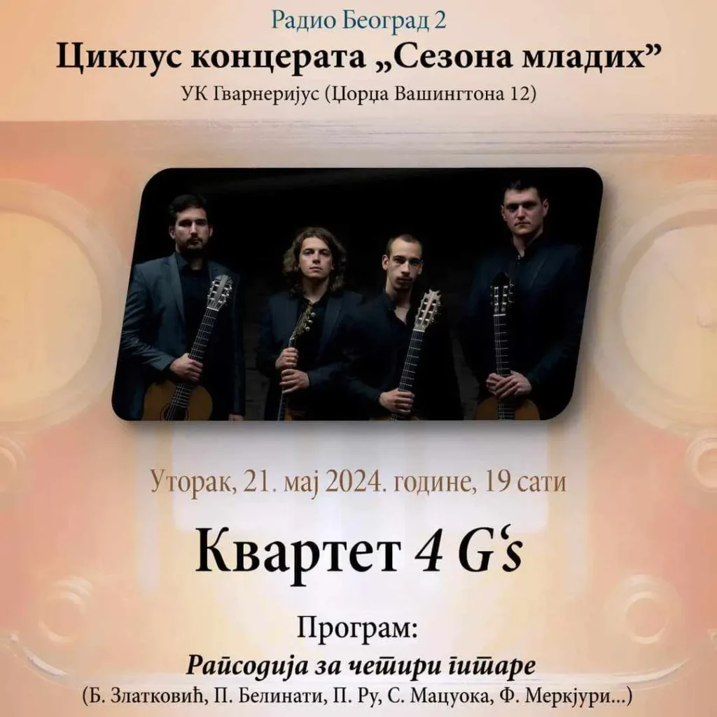 21 мај МУЗИКА Posted by admin октобар 3, 2025 0 РАДИО БЕОГРАД 2 И ГВАРНЕРИЈУС ПРЕДСТАВЉАЈУ ЦИКЛУС КОНЦЕРАТА: СЕЗОНА МЛАДИХ – КВАРТЕТ 4Г’С РАДИО БЕОГРАД 2 И ГВАРНЕРИЈУС ПРЕДСТАВЉАЈУ ЦИКЛУС КОНЦЕРАТА: СЕЗОНА МЛАДИХ – КВАРТЕТ 4Г’С РАДИО БЕОГРАД 2 И ГВАРНЕРИЈУС ПРЕД... Continue reading