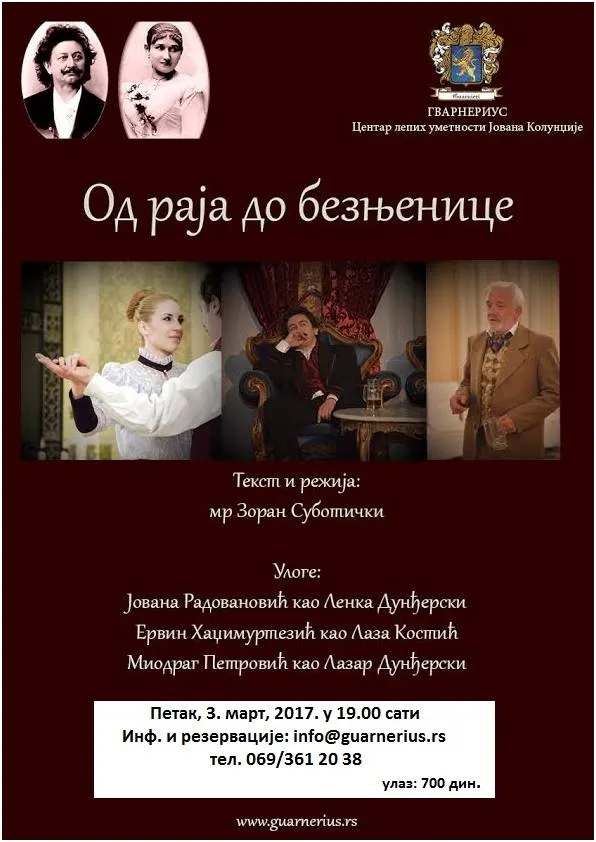 03 mar MUZIKA, MULTIMEDIJA Posted by admin октобар 3, 2025 0 REPRIZA PREDSTAVE „OD RAJA DO BEZNJENICE“ ZBOG VELIKOG INTERESOVANJA POZORIŠNI KOMAD „OD RAJA DO BEZNJENICE“ PONOVO U GVARNERIJUSU! Petak, 3. mart 2017. godine u 19... Continue reading