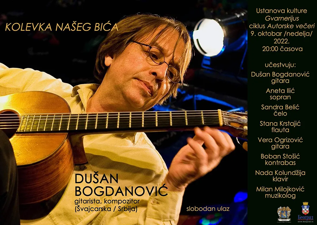 Izaberite Koncert KOLEVKA NAŠEG BIĆA – DUŠAN BOGDANOVIĆ, gitarista i kompozitor Koncert KOLEVKA NAŠEG BIĆA – DUŠAN BOGDANOVIĆ, gitarista i kompozitor