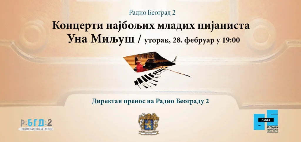 Izaberite RADIO BEOGRAD 2 I GVARNERIJUS PREDSTAVLJAJU KONCERTI NAJBOLJIH MLADIH PIJANISTA UNA MILJUŠ RADIO BEOGRAD 2 I GVARNERIJUS PREDSTAVLJAJU KONCERTI NAJBOLJIH MLADIH PIJANISTA UNA MILJUŠ