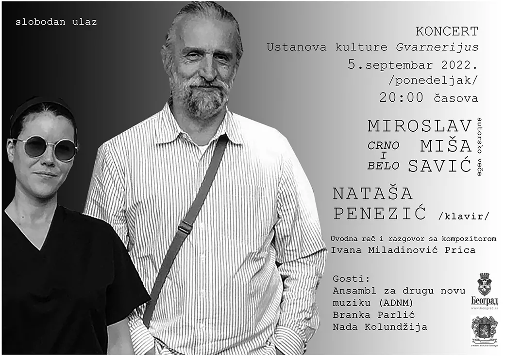 Концерт “ЦРНО И БЕЛО” пијанисткиње Наташе Пенезић и аутора Мирослава Мише Савића, познатог београдског композитора, педагога, продуцента, дизајнера звука и перформанс уметника.