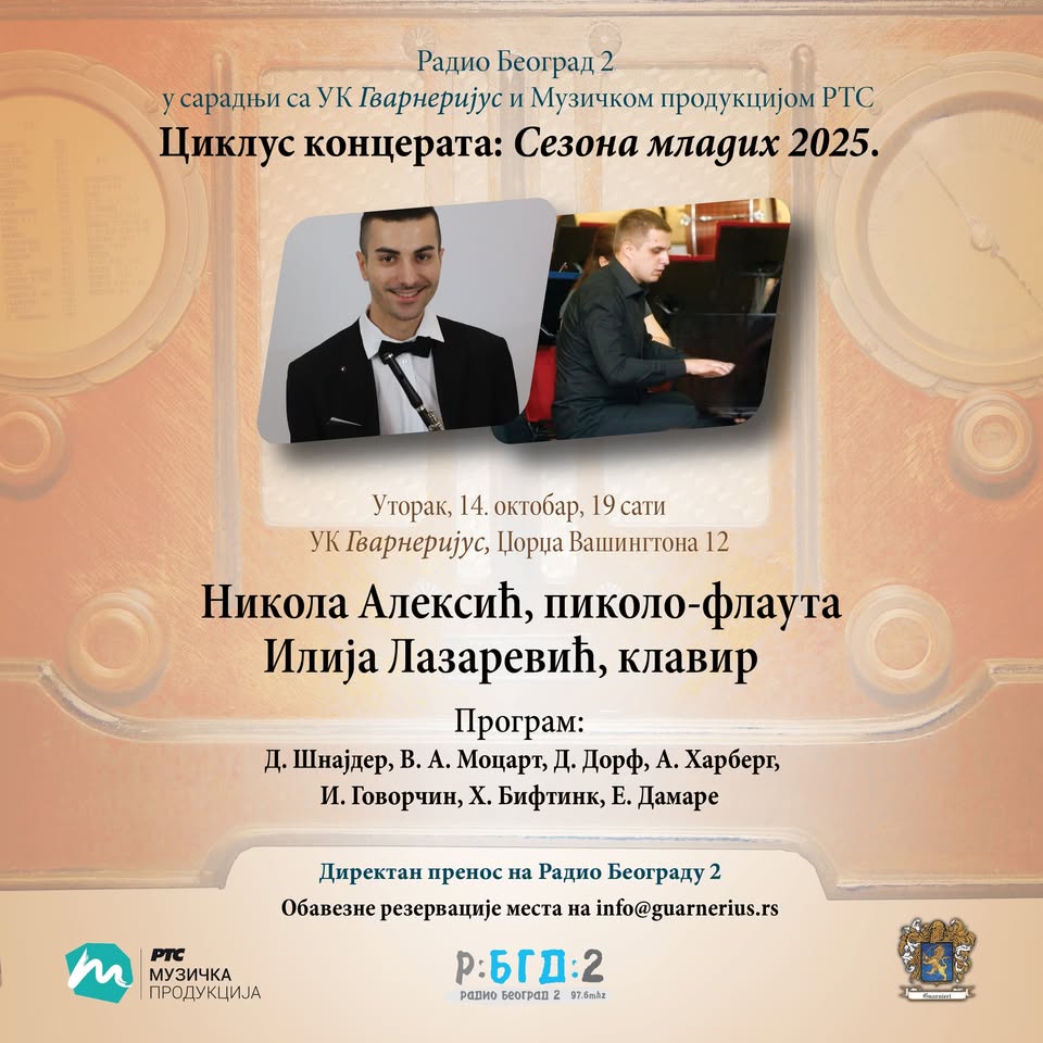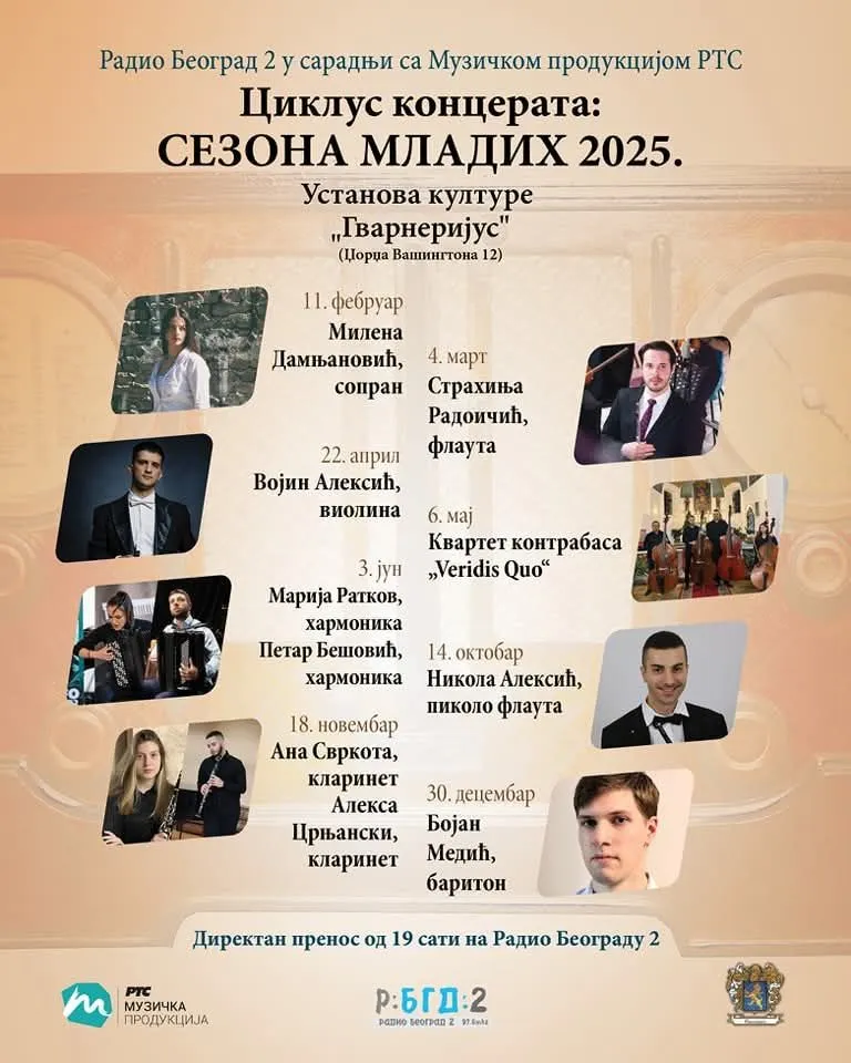 Ciklus koncerata „SEZONA MLADIH 2025“ Radio Beograd 2 u saradnji sa Muzičkom produkcijom RTS i Ustanovom kulture Gvarnerijus