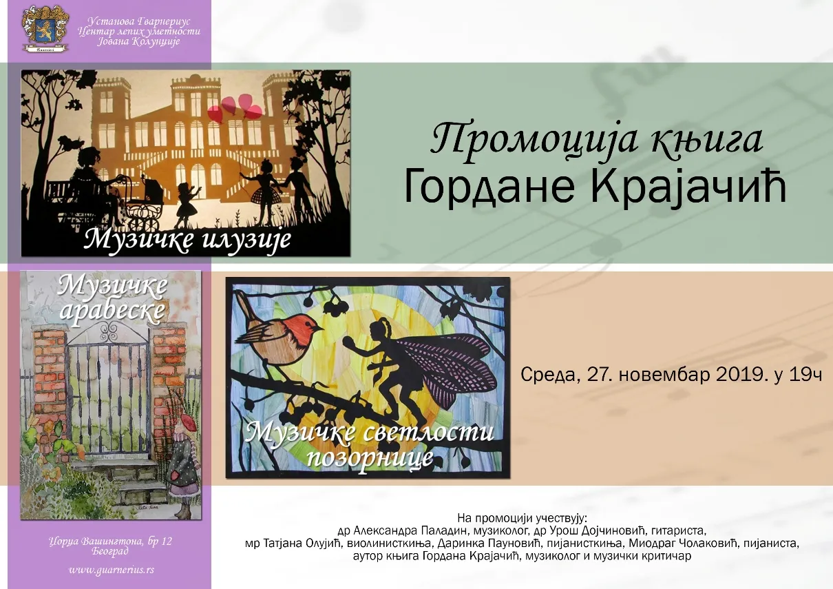 ПРОМОЦИЈА КЊИГА „МУЗИЧКЕ ИЛУЗИЈЕ“, „МУЗИЧКЕ СВЕТЛОСТИ ПОЗОРНИЦЕ“ И „МУЗИЧКЕ АРАБЕСКЕ“ ГОРДАНЕ КРАЈАЧИЋ