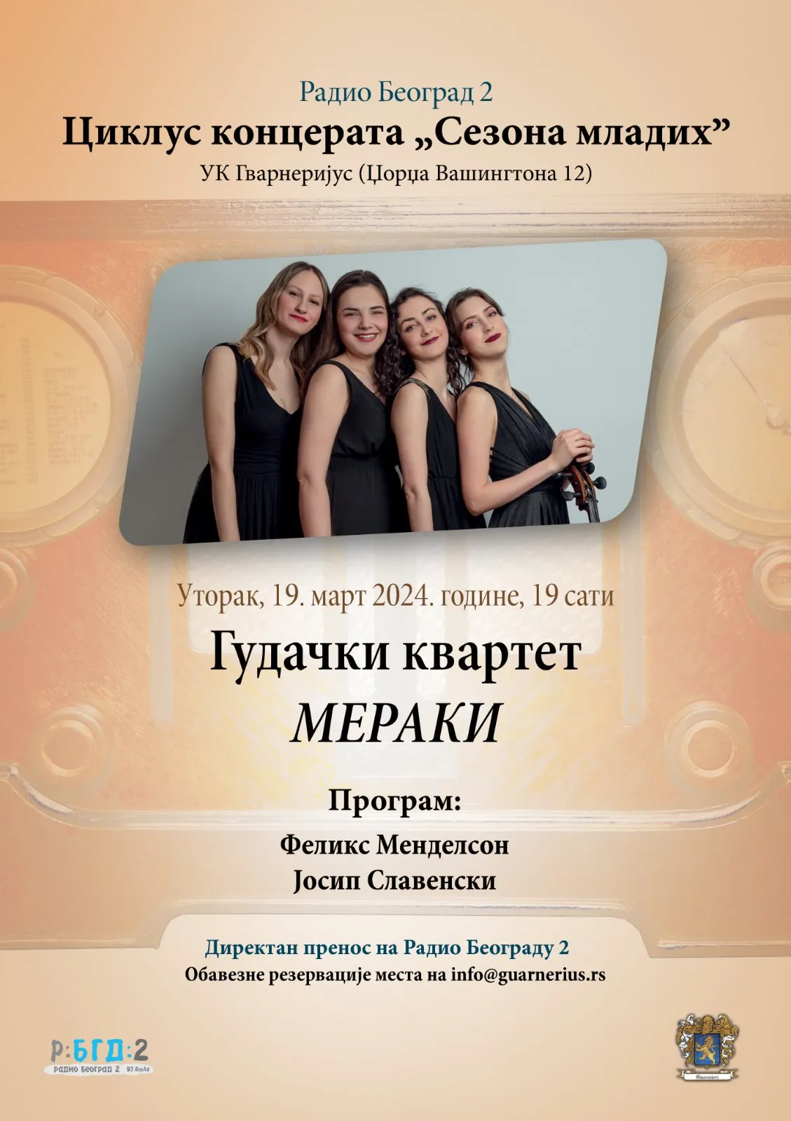 RADIO BEOGRAD 2 I GVARNERIJUS PREDSTAVLJAJU CIKLUS KONCERATA: SEZONA MLADIH – GUDAČKI KVARTET MERAKI