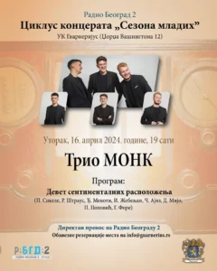 RADIO BEOGRAD 2 I GVARNERIJUS PREDSTAVLJAJU CIKLUS KONCERATA: SEZONA MLADIH – TRIO MONK